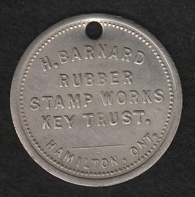 H. Barnard Rubber Stamp Works Key Trust. Hamilton, Ont., Seals Stencils Stamps Return And Get -One- Dollar.