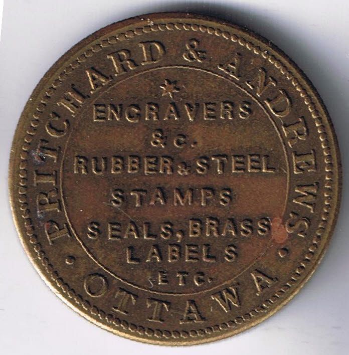 BR 772. Pritchard & Andrews, Ottawa, ON. Brass, AU, 28mm, 10.0g. Thick planchet.