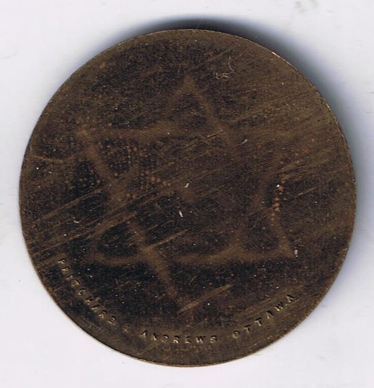 BR 789b. Similar to BR 789, but reverse uniface paired with Pritchard & Andrews Ottawa reverse stock die. Brass, 28mm, 5.30g, UNC.