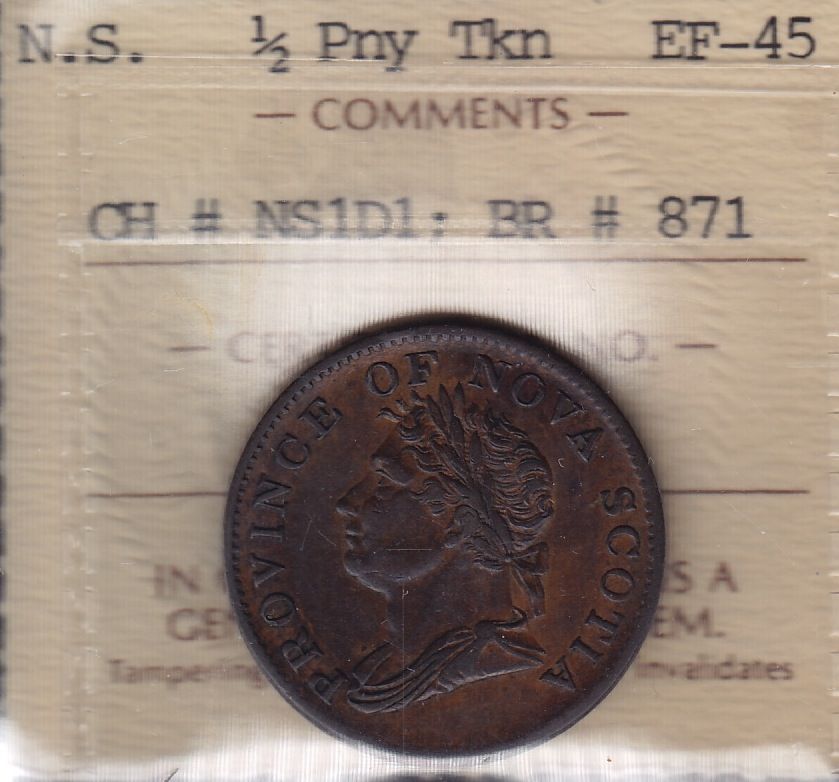 BR 871 - CH NS-1D1, Half Penny Token, ICCS EF-45.