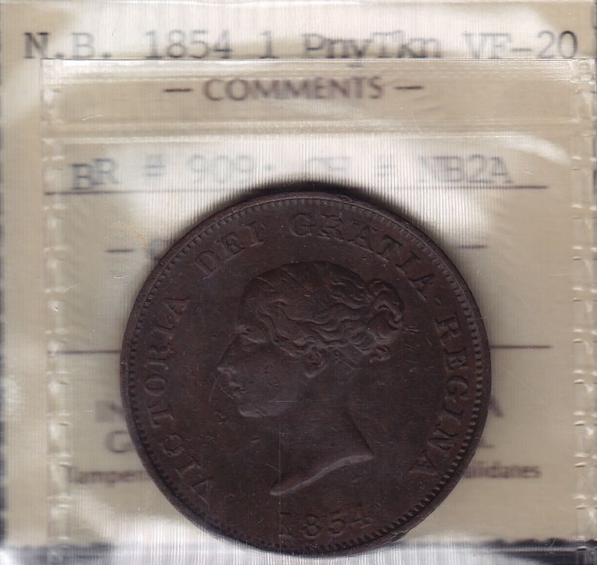 BR 909 - CH NB-2A, 1854 One Penny Token, ICCS VF-20.