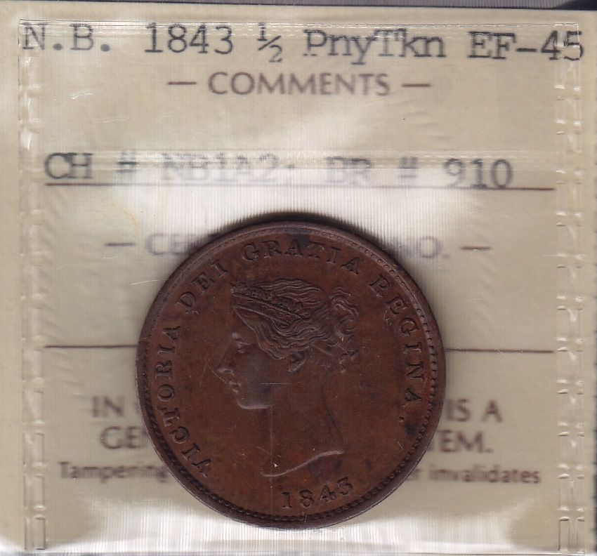BR 910 - CH NB-1A2, 1843 Half Penny Token, ICCS EF-45.