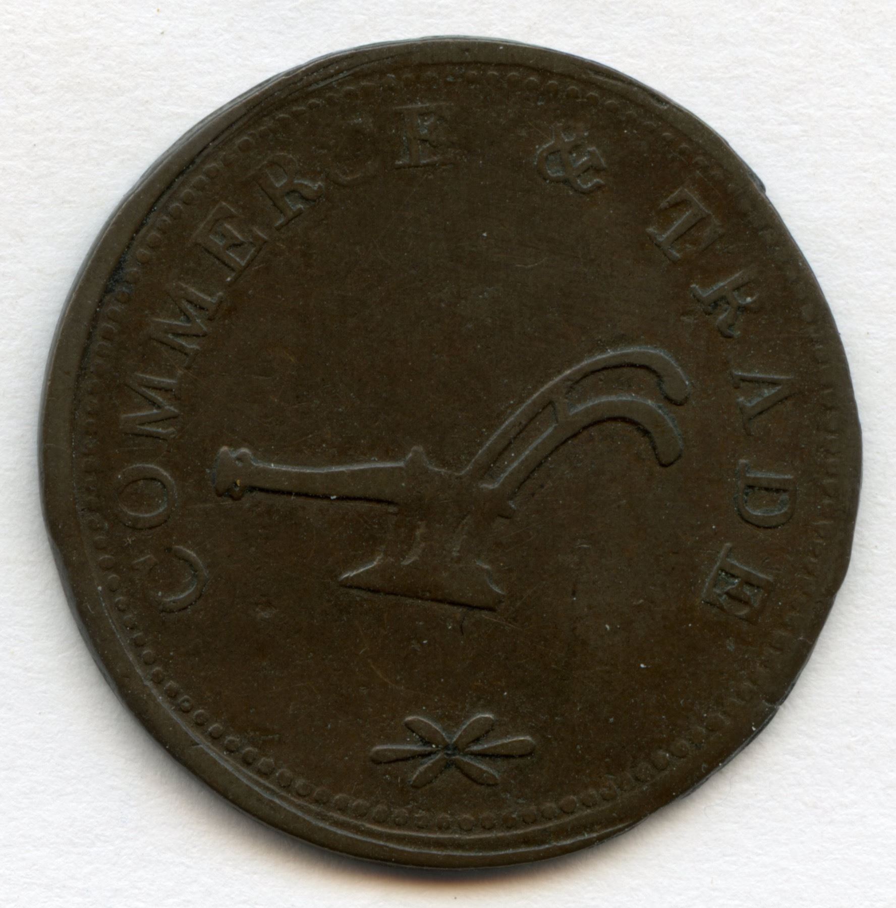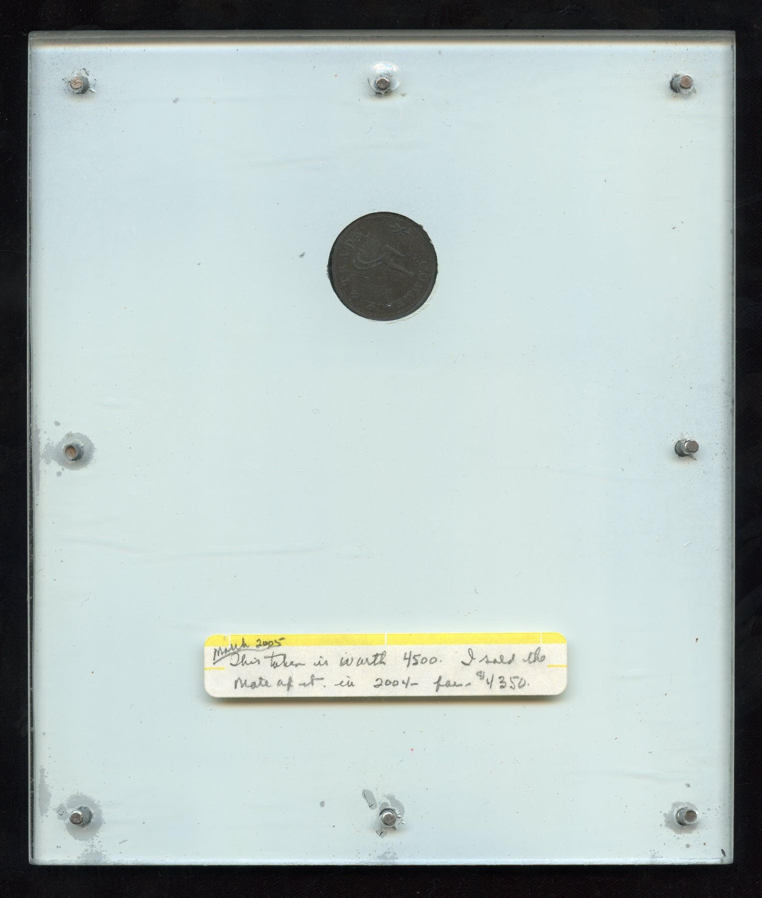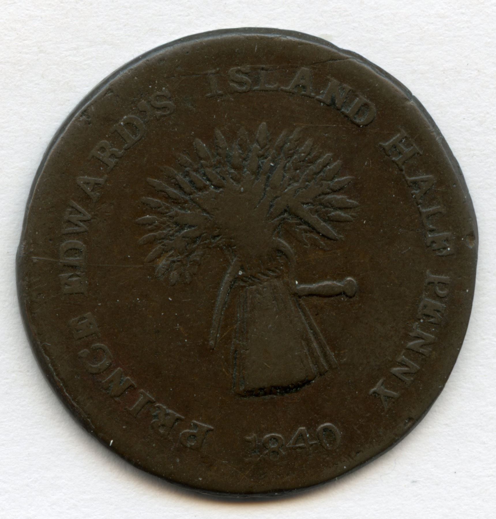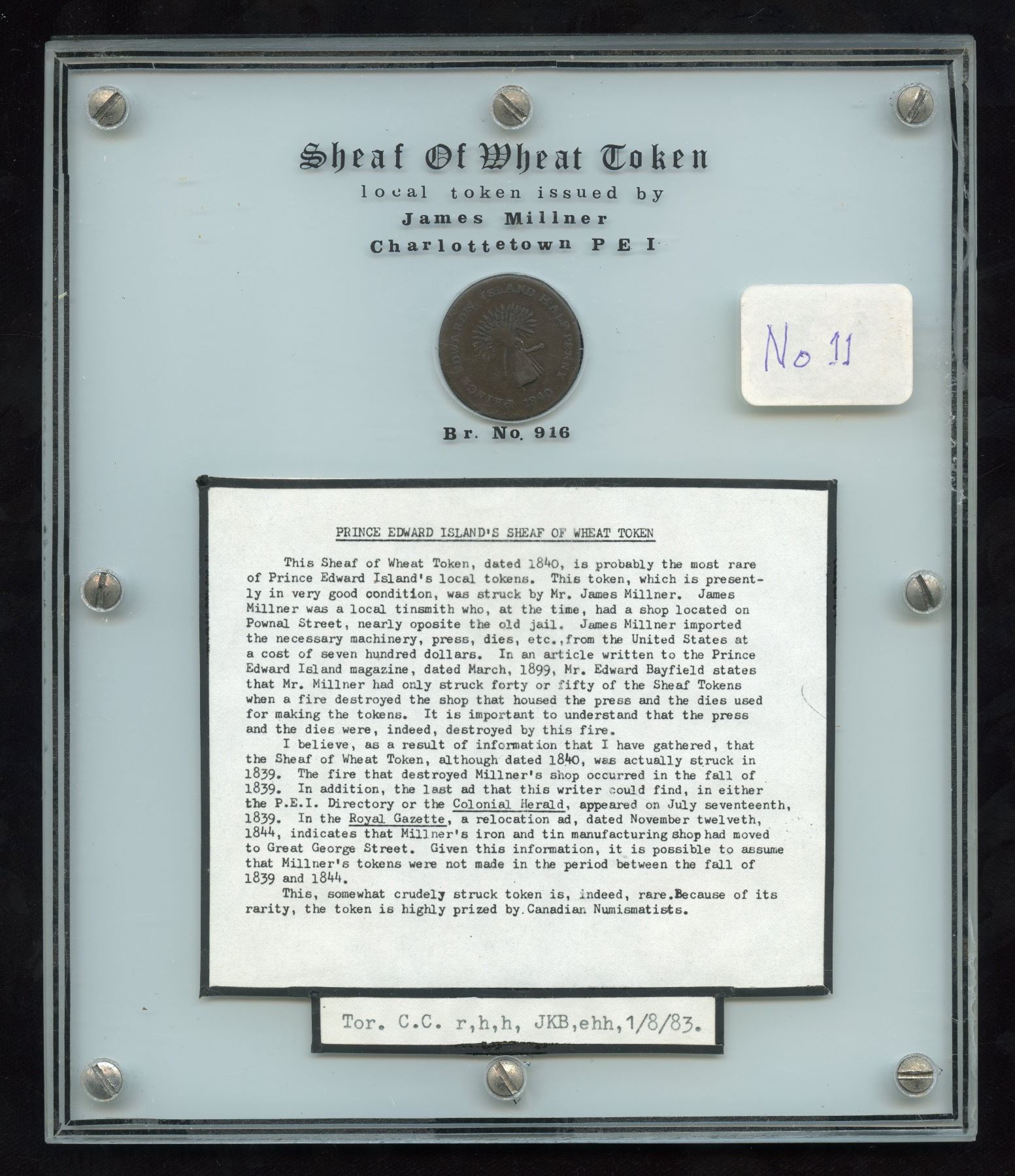 Issued in 1840 by local merchant James Milner, Charlottetown, PEI. Neatly housed in an acrylic holder with write up. CH PE-4, all letters of the legends and the date fully legible; rarely found any better - a good EF. Part of the Dickieson Collection.