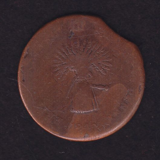 BR 916. - 1840 James Milner Prince Edward’s Island Halfpenny Sheaf of Wheat Token. Copper. 27 mm. Rare. Clip is present, VG. Ex:Ing.