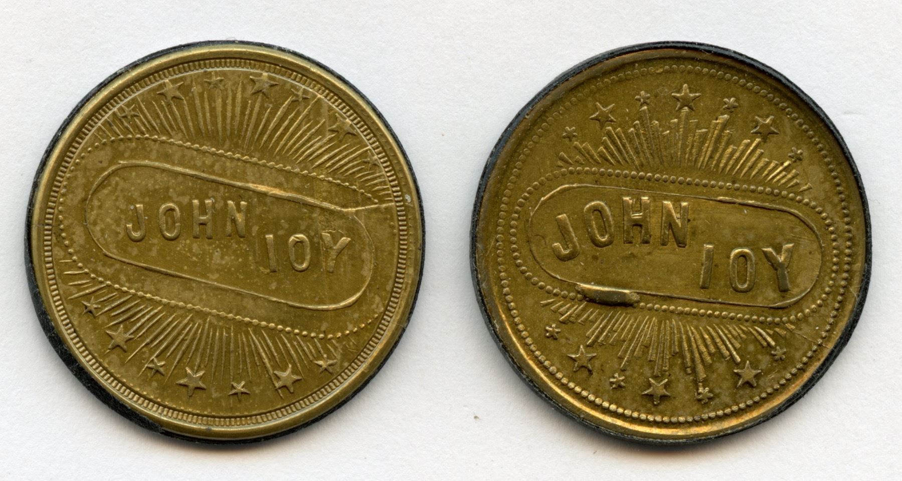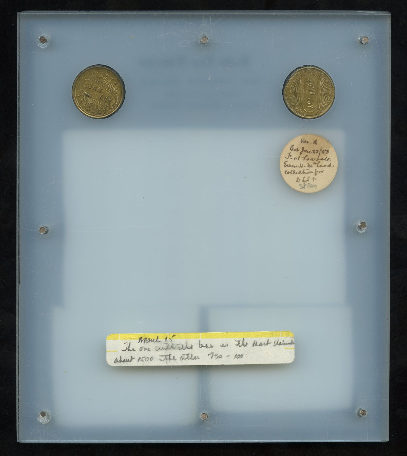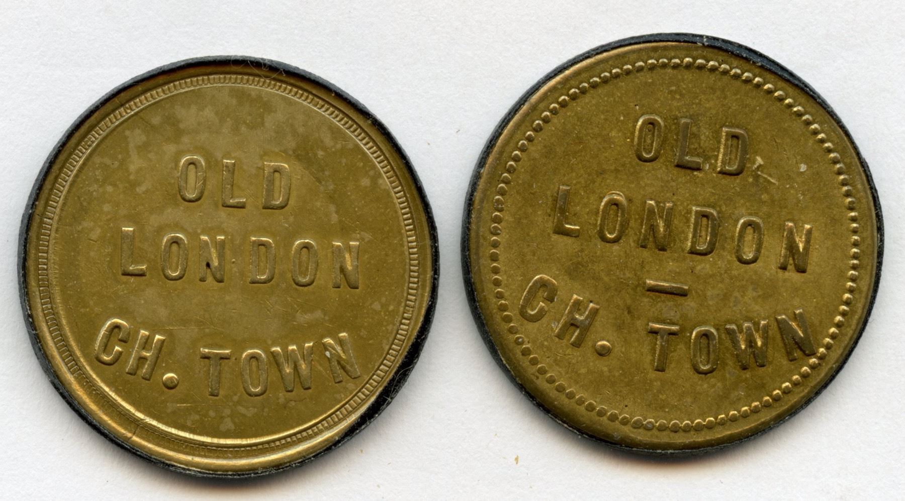 Breton estimates 100 tokens were issued for use as bar or pool checks. A second variation was discovered without the bar. Nice AU/Unc pair in acrylic holder and complete write up. Part of the Dickieson Collection. 2 Pcs.