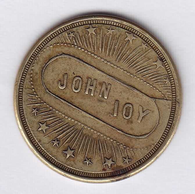 BR 922, John Joy’s bar or pool token Charlottetown, good VF. Ex Don Flick.