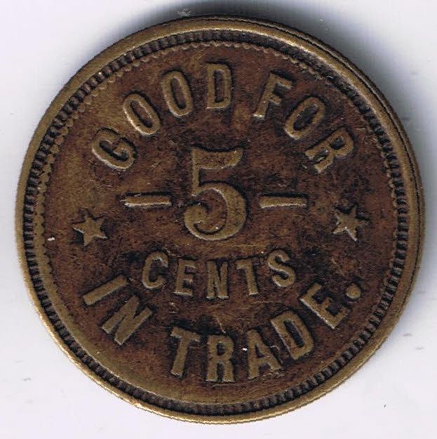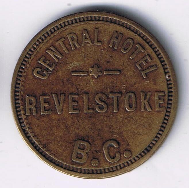 BR 936. Central Hotel Revelstoke, B.C. Good for 5 cents in trade. Brass, 25mm, 3.88g, EF.