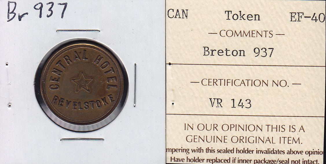 BR 937. Central Hotel Revelstoke, BC, VF-EF.