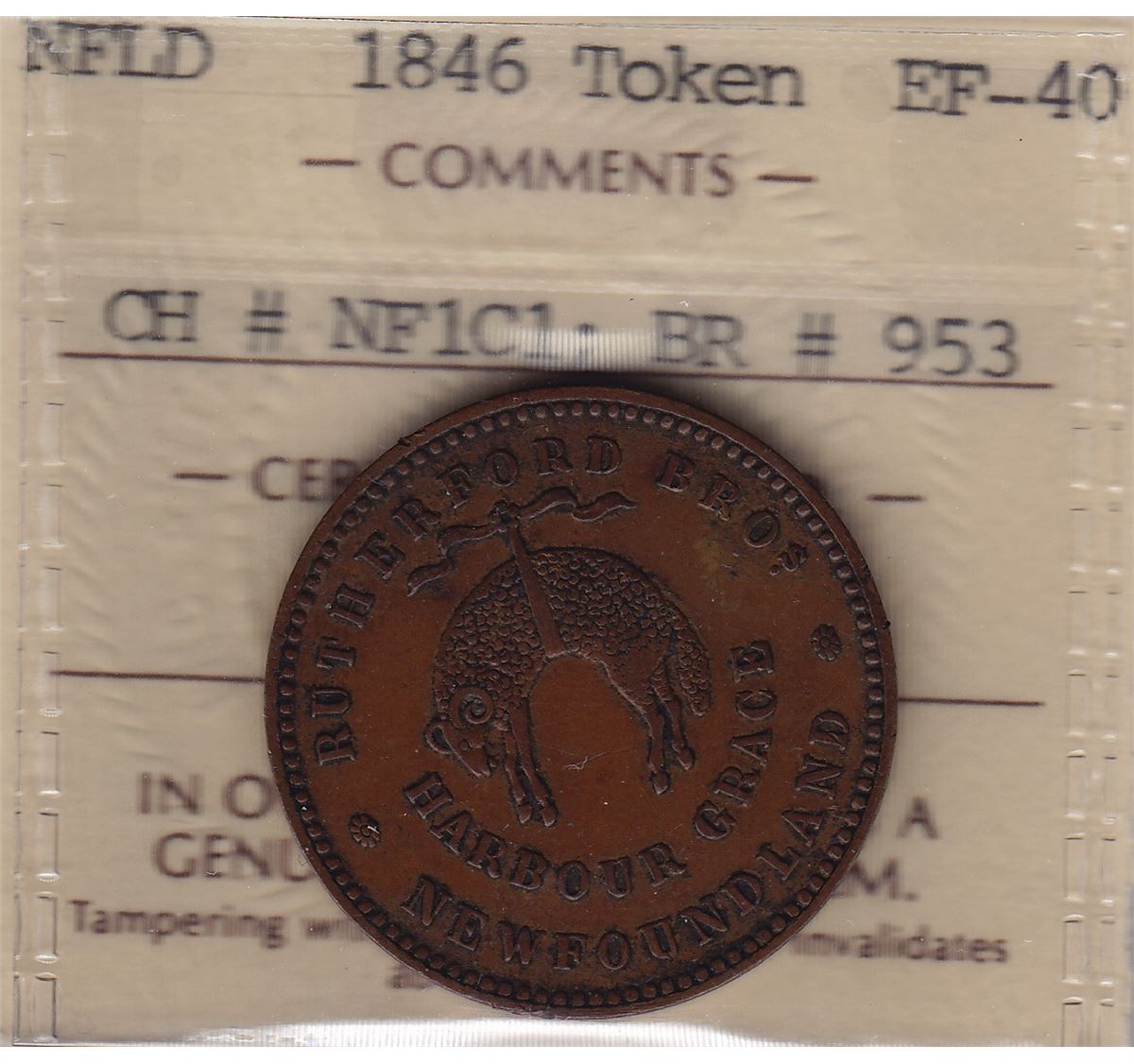 BR 953, Rutherford, Harbour Grace CH NF-1C1, fine wool, straight reverse, ICCS EF-40.