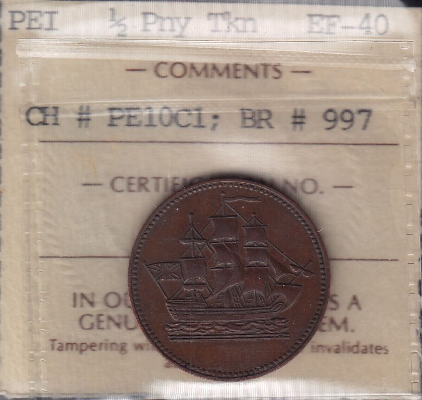 BR 997 - CH PE-10C1, Prince Edward Island Half Penny Token, ICCS EF-40.