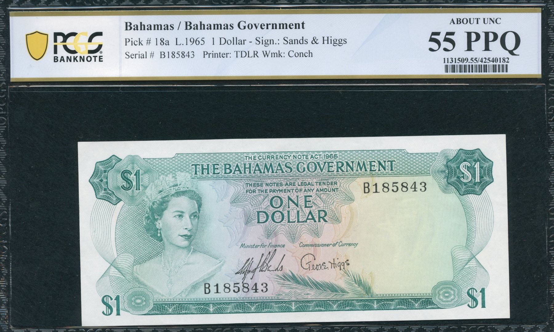 Pick # 18a, PCGS About Unc 55 PPQ, Signed Sands & Higgs. Prefix "B". S/N:B185843A715441