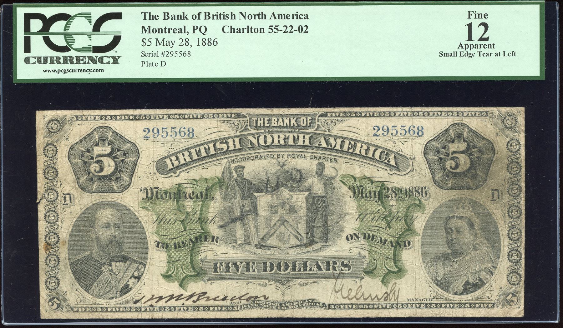 CH 55-22-02. PCGS Fine 12, small edge tear. This $5 is evenly circulated without any major distractions. S/N:295568/D.