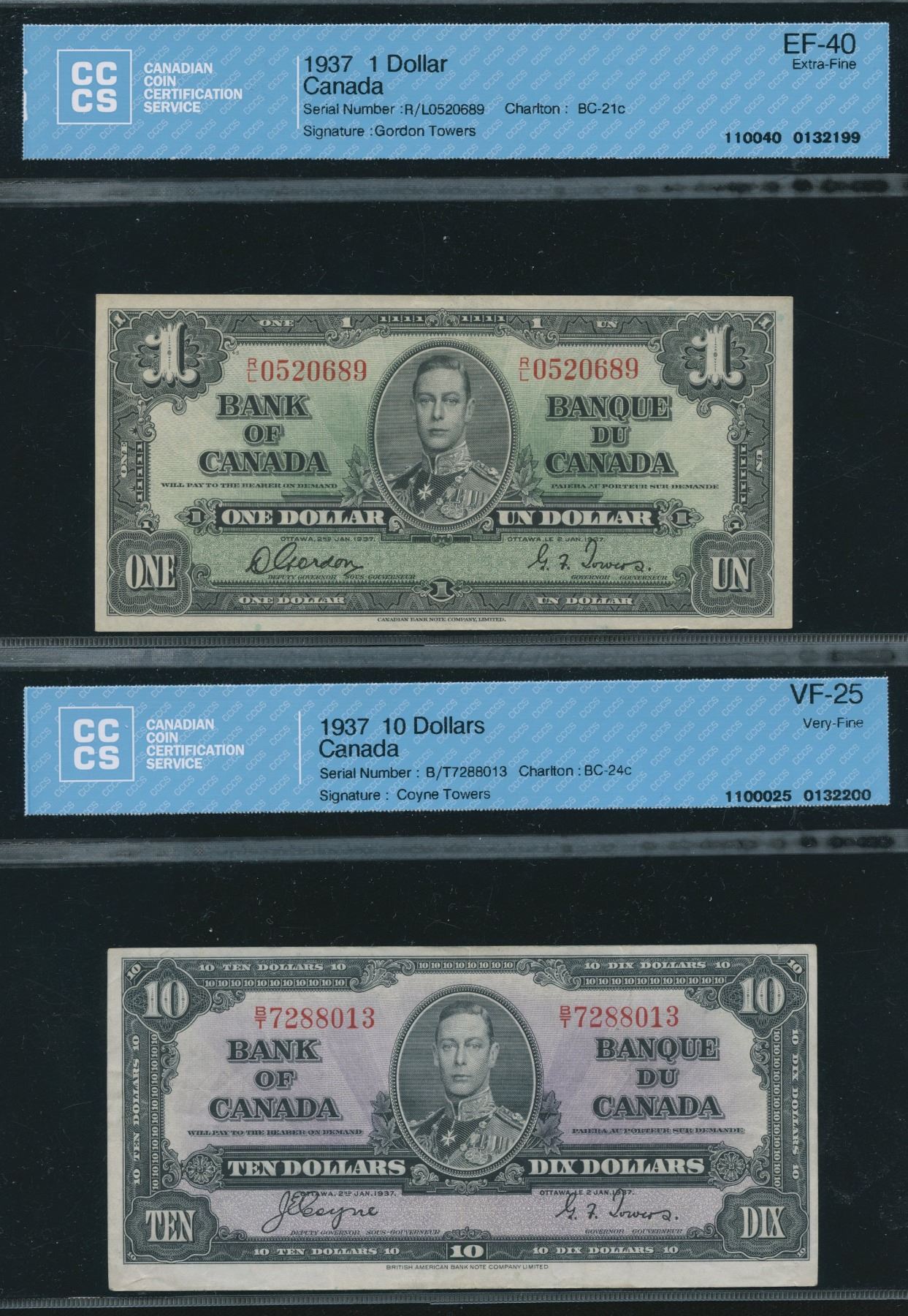 Includes: BC-21c, CCCS EF-40, S/N:R/L0520689 & BC-24c, CCCS VF-25, S/N:B/T7288013. 2 pcs.