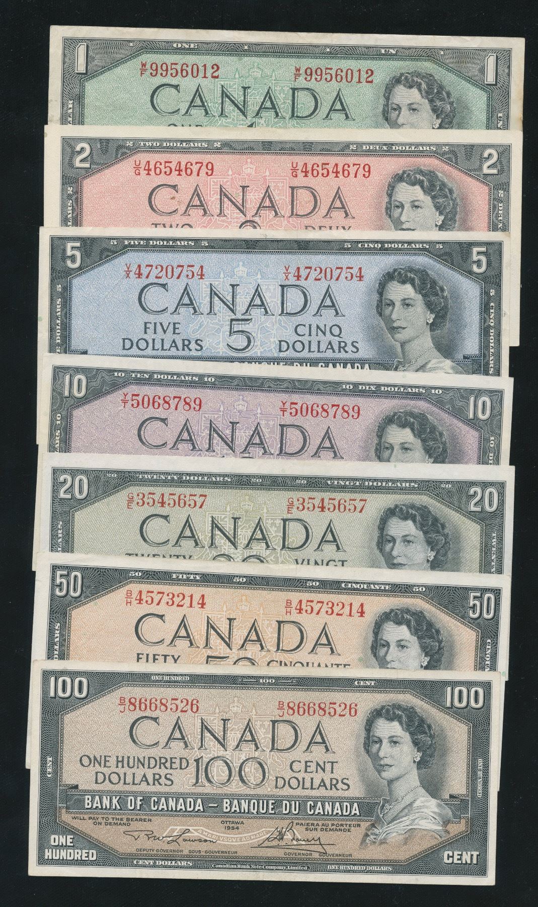 Bank of Canada $1 - $100, 1954 Banknote Set
