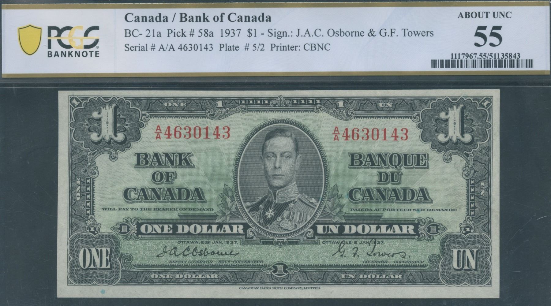 BC-21a. PCGS AU 55. S/N:A/A4630143.