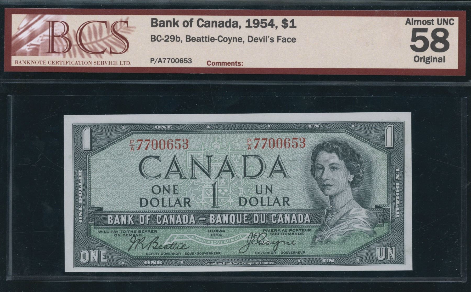 BC-29b. BCS AU58, original. Beattie-Coyne. A nice original note with deep embosing. S/N: P/A7700653.