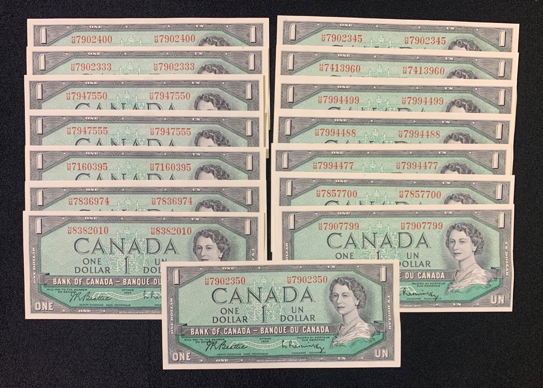 BC-37b-i. AU/Unc's. All Beattie-Rasminsky Signatures. 15 Pcs.