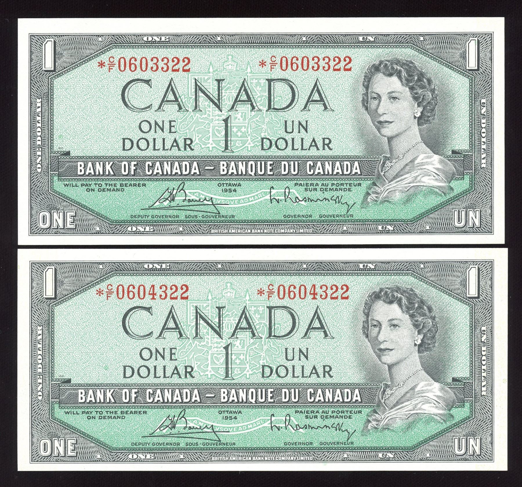 Bank of Canada $1, 1954 - Lot of 2 Replacement Notes