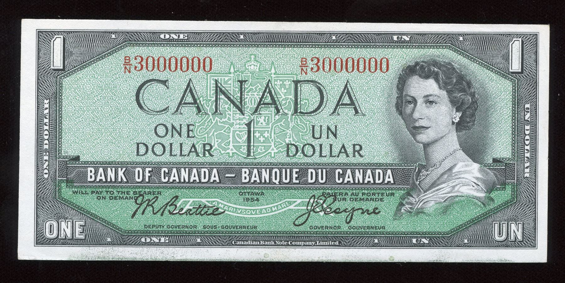 Bank of Canada $1, 1954 Million Numbered Note