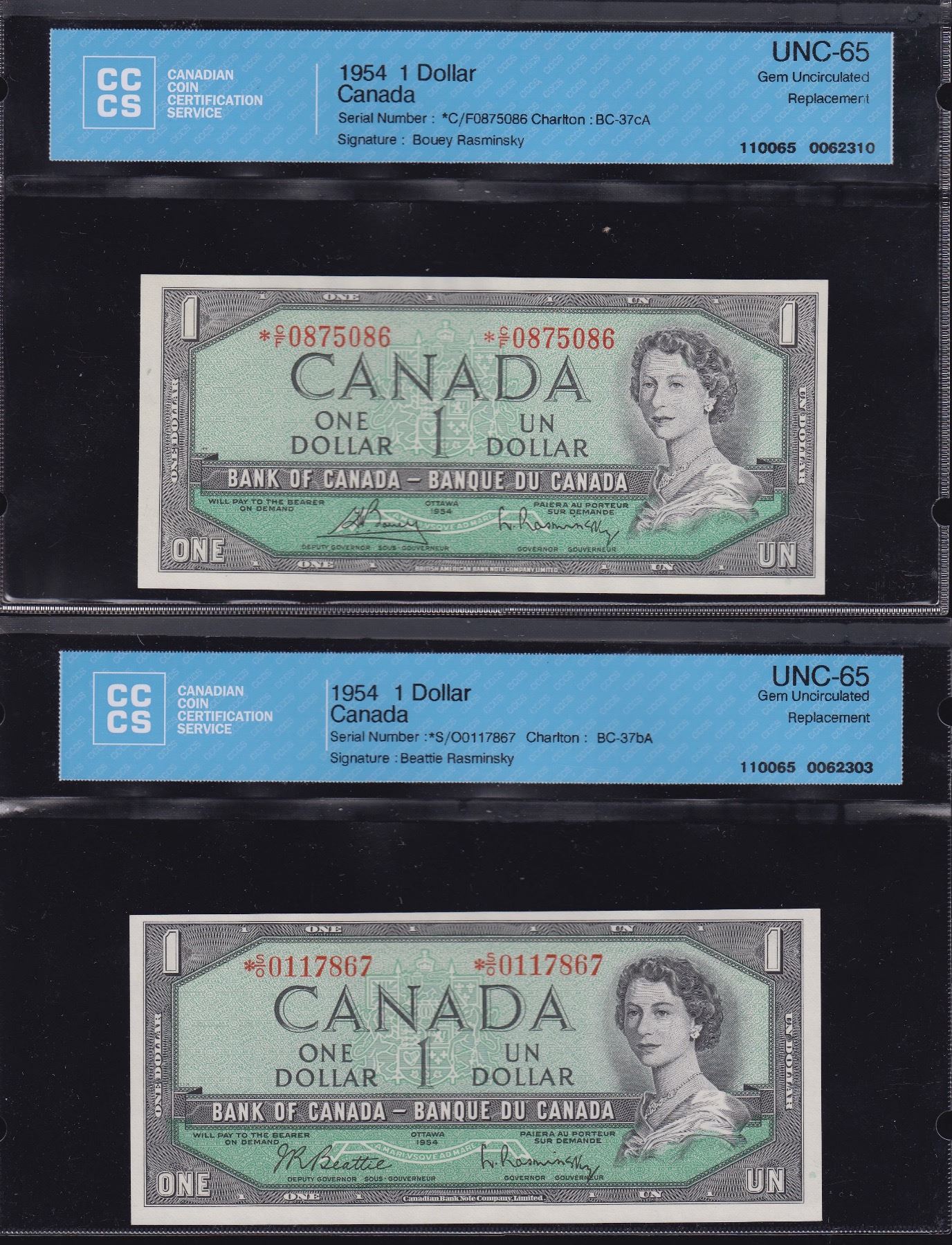 BC-37bA. CCCS Gem Unc. 65 S/N:*S/O0117867. BC-37cA. CCCS Gem Unc. 65 S/N:*C/F0875086. 2 Pcs.