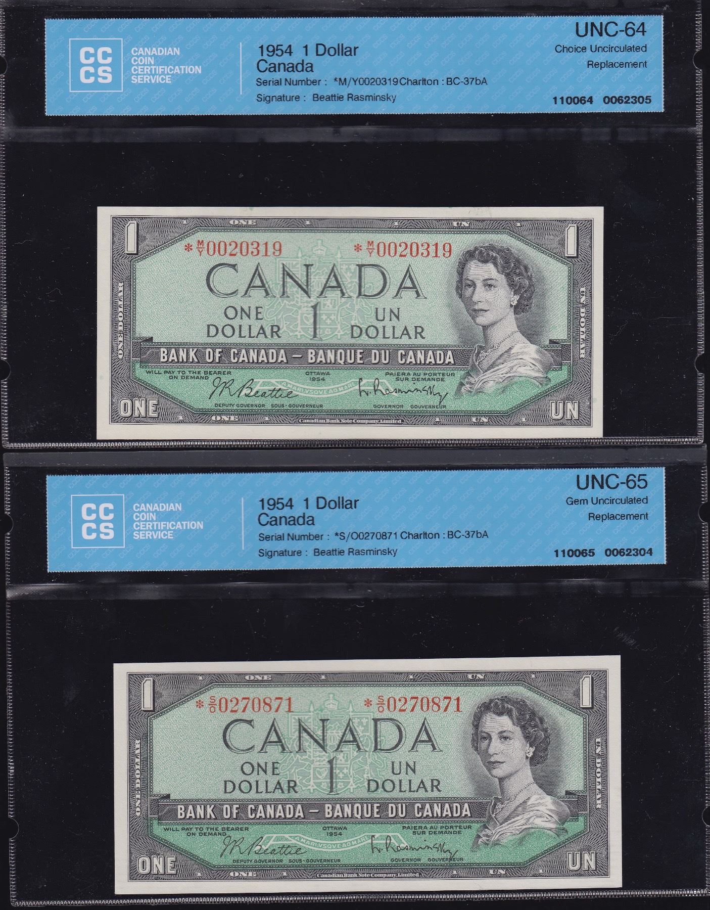 BC-37bA. CCCS Gem Unc. 65 S/N:*S/O0270871. BC-37bA. CCCS Choice Unc. 64 S/N:*M/Y0020319. 2 Pcs.