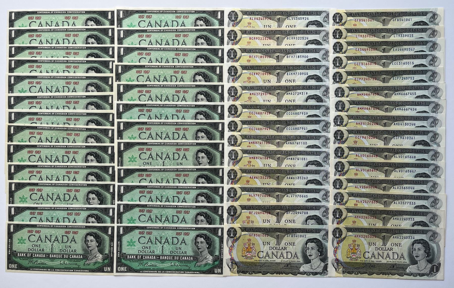 Bank of Canada $1, 1967 & 1973 Banknotes - Lot of 53
