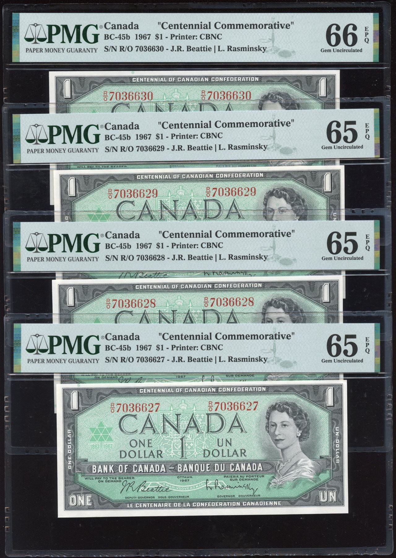 BC-45b. PMG Gem Unc. 65 EPQ. S/N: R/O7036627 - 630. 4 Pcs.