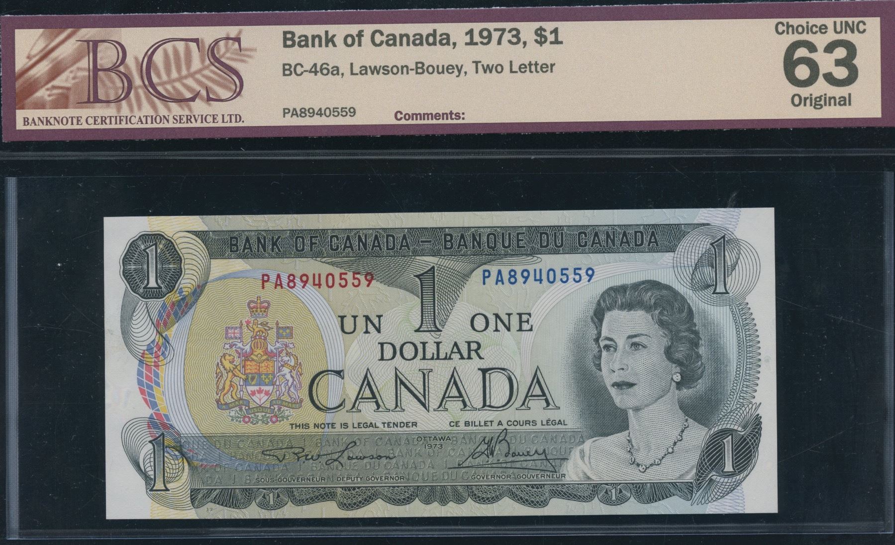 BC-46a. BCS Choice UNC 63, original. S/N: PA8940559.