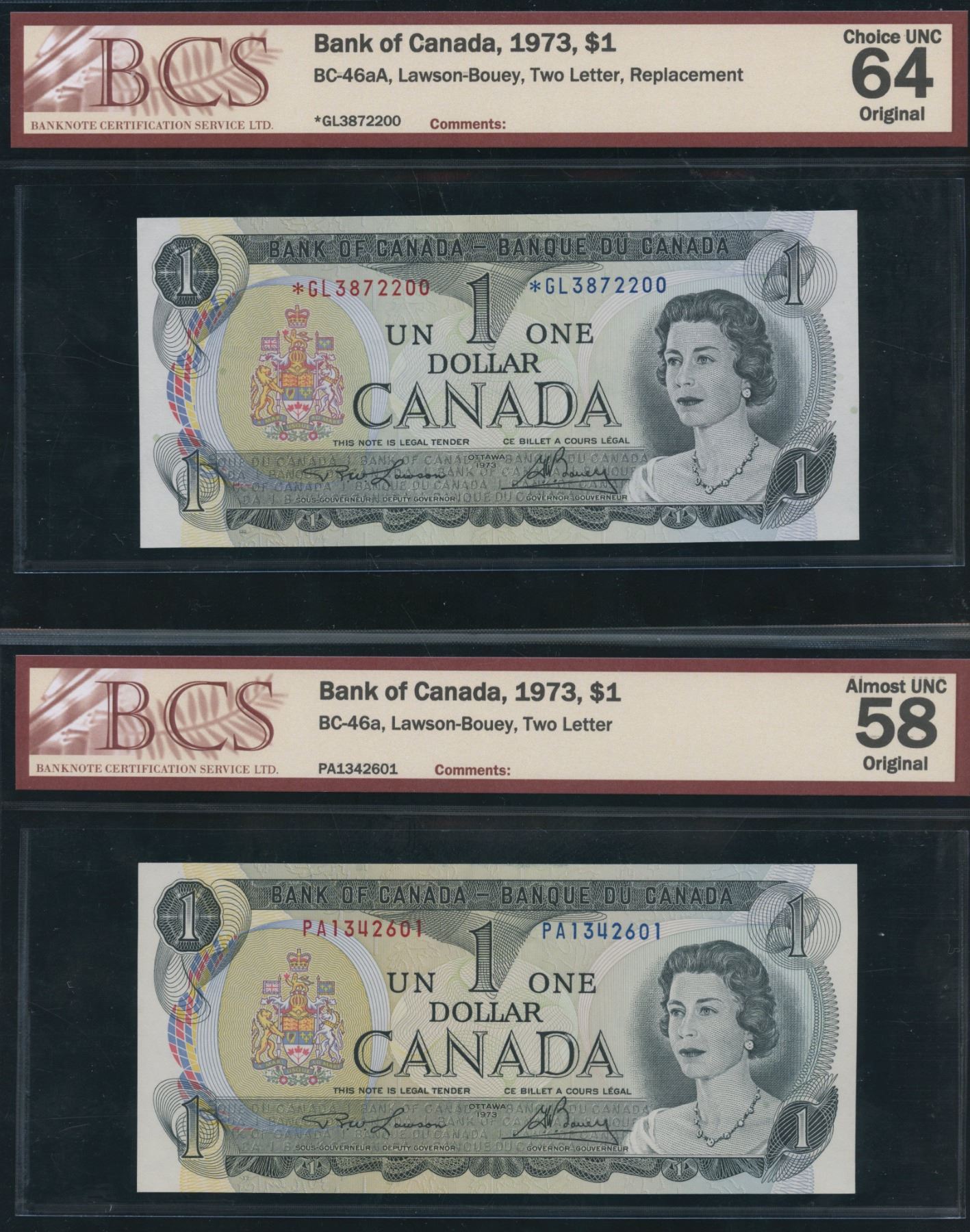 BC-46a. BCS AU58, original. S/N:PA1342601. BC-46aA. BCS Choice UNC 64, original. S/N:*GL3872200. 2 pcs.