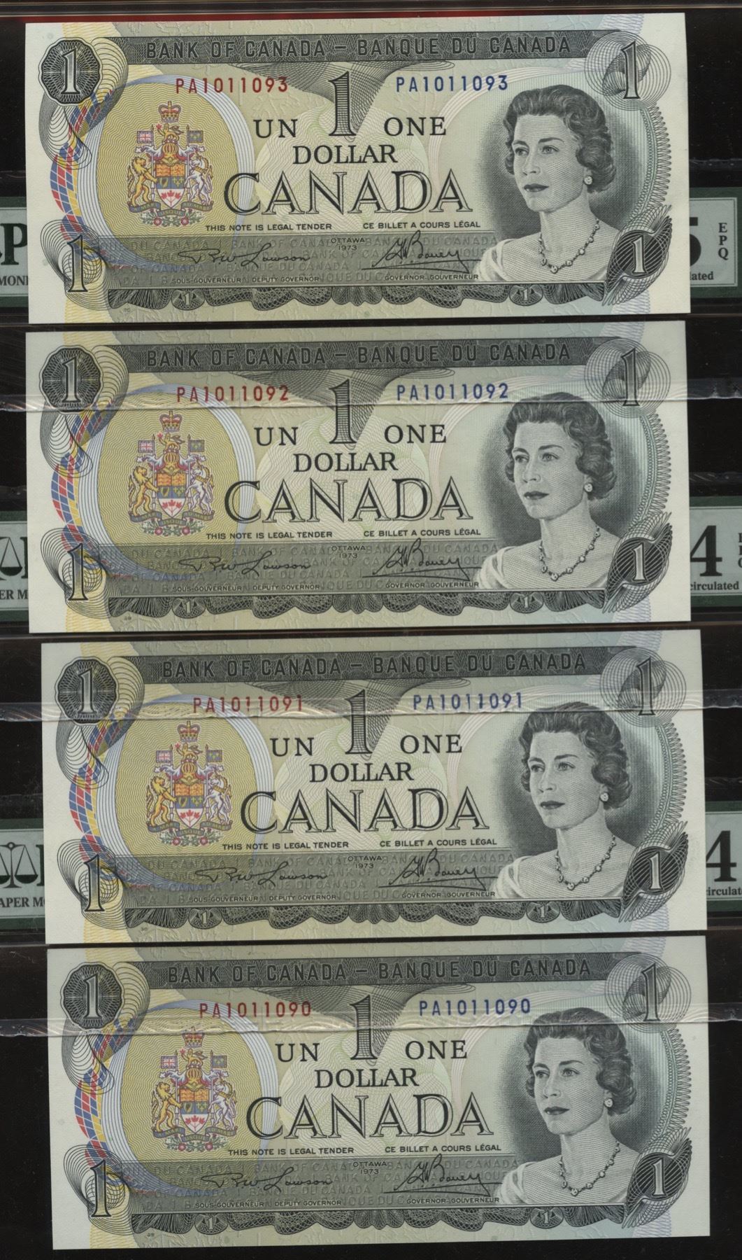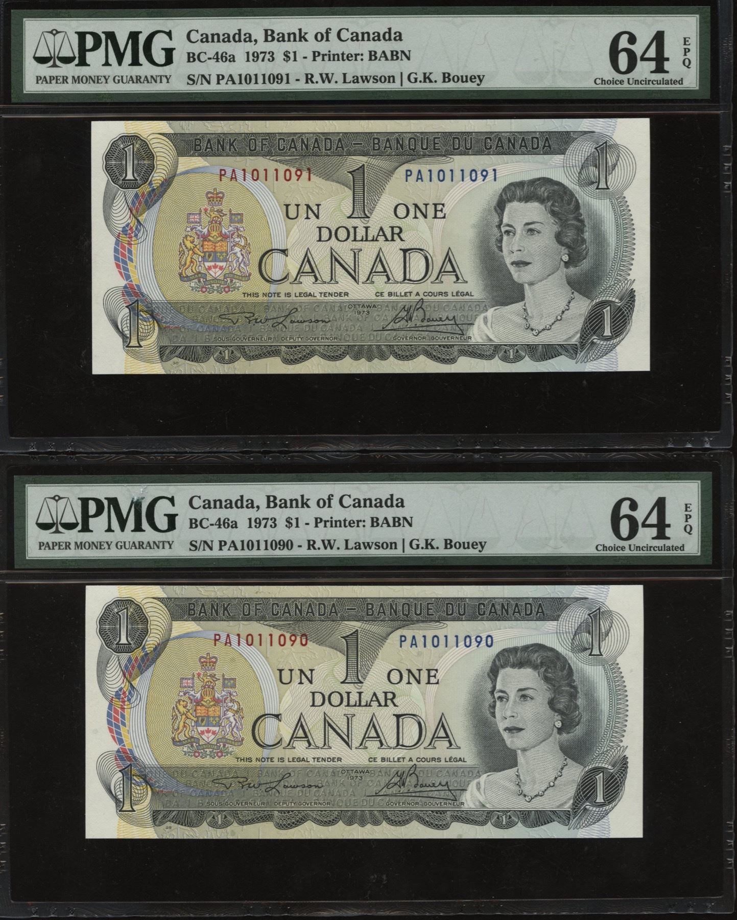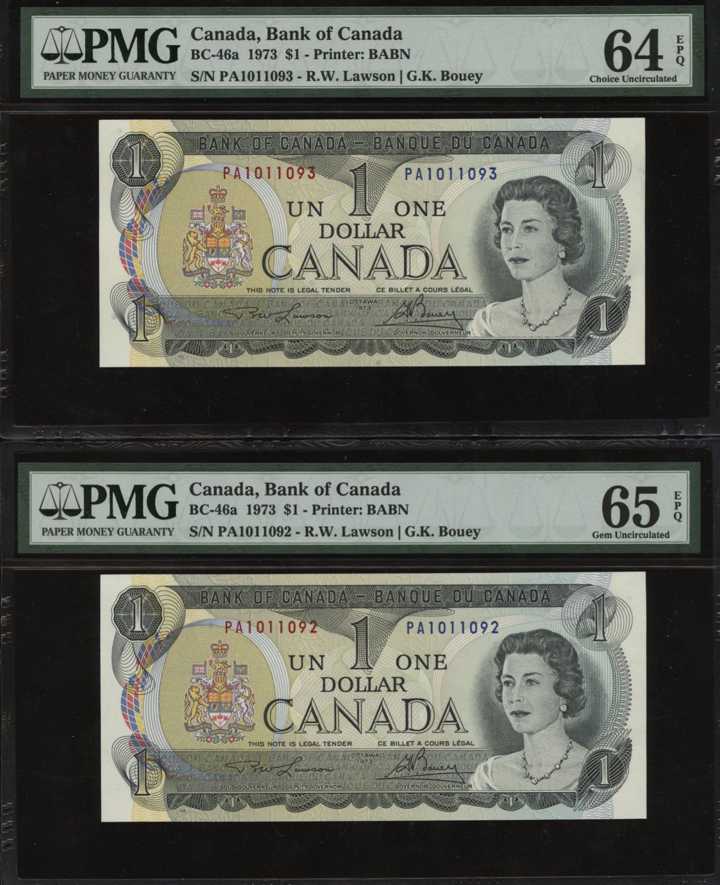 BC-46a. PMG Choice & Gem Unc. 64 & 65 EPQ's. S/N: PA1011090-1093. 4 Pcs.