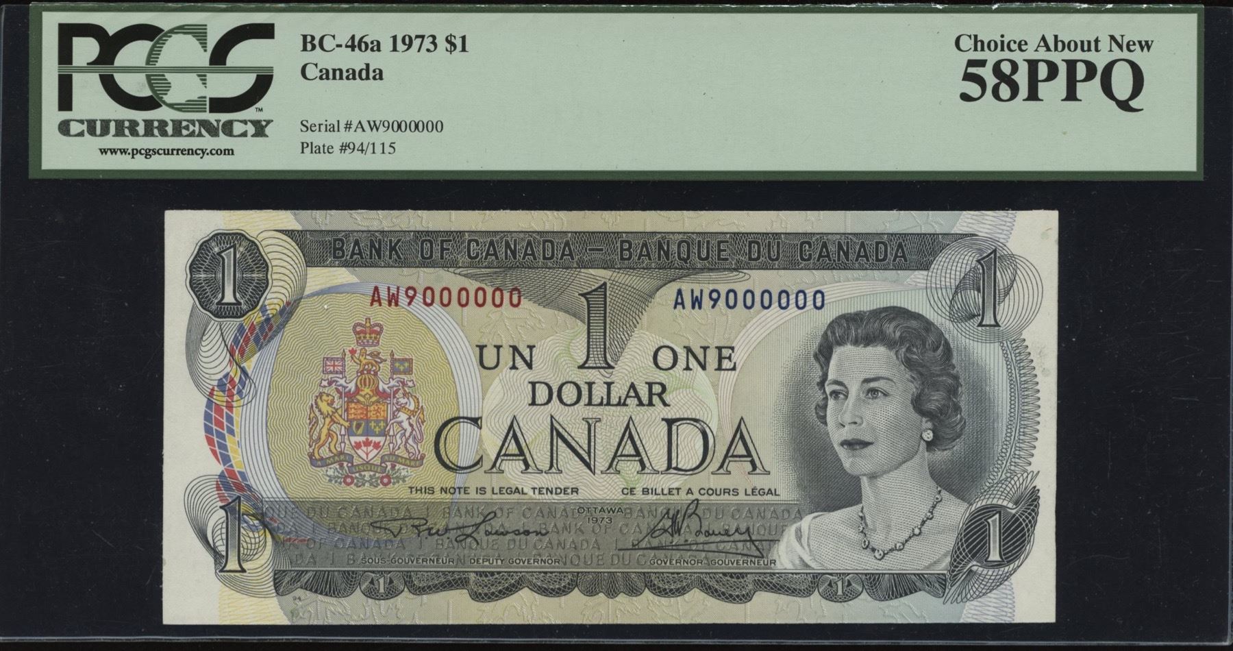 BC-46a. PCGS Choice AU58 PPQ. S/N: AW9000000.