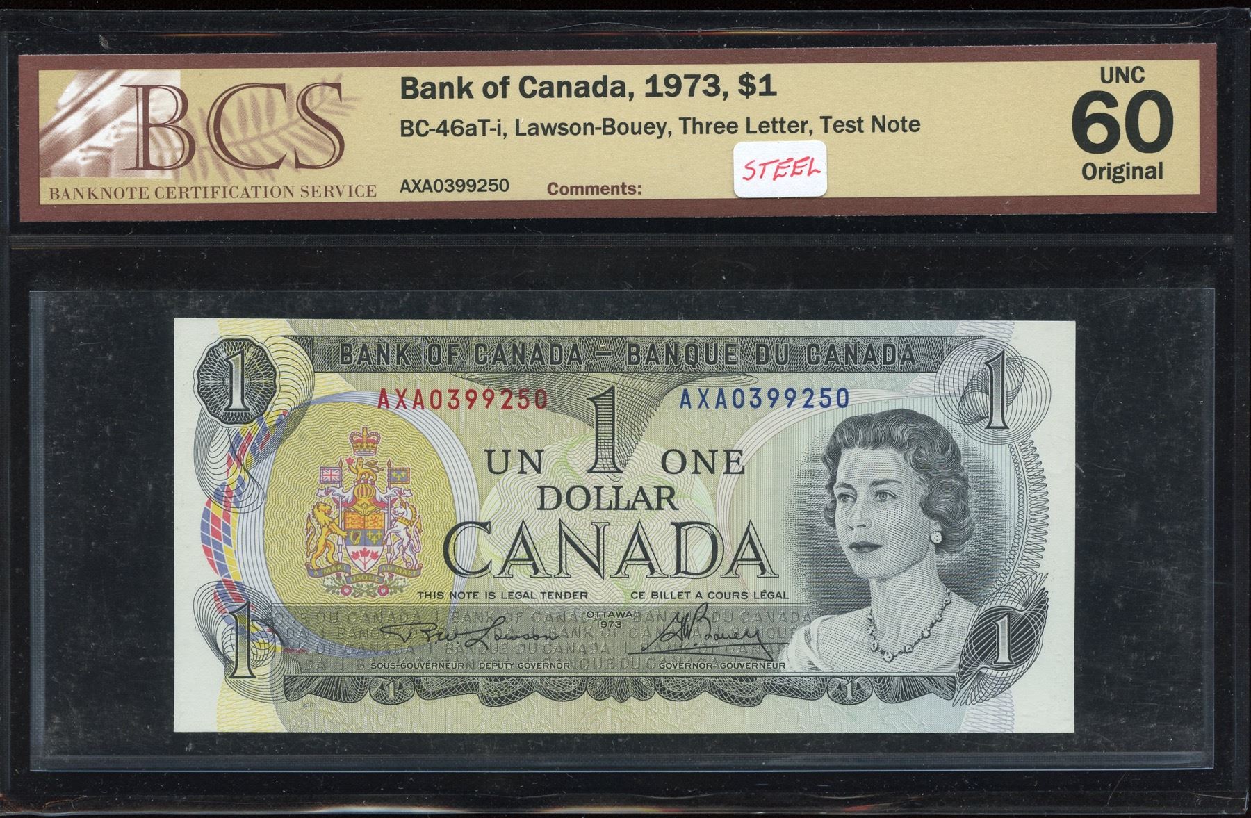 Bank of Canada $1, 1973 Test Note