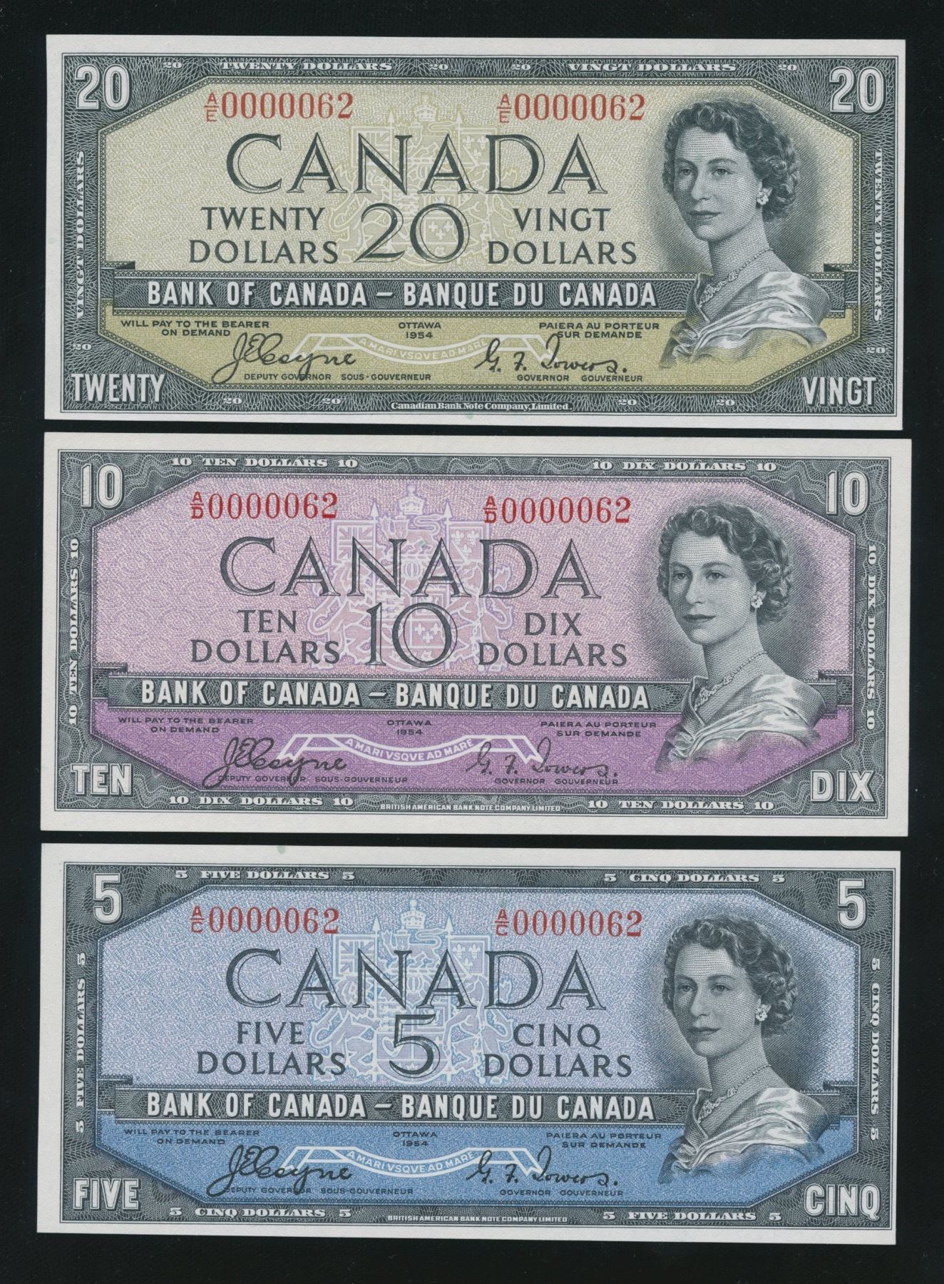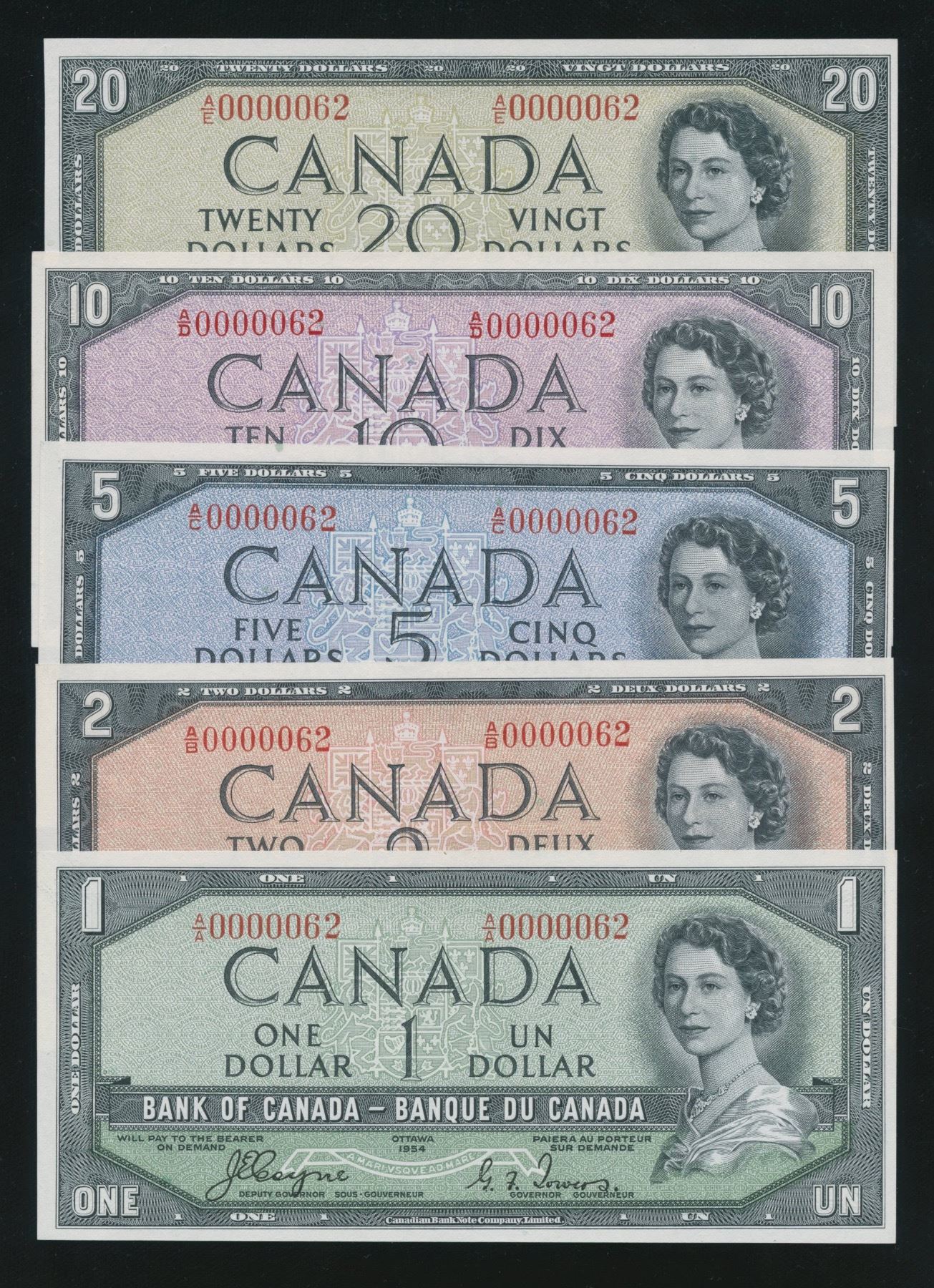 Another impressive denomination set of the highly collectible Devil's Face portrait issues. The Uncirculated set has the first prefix for each type with matching serial numbers and low serial number 62. 5 Pcs.