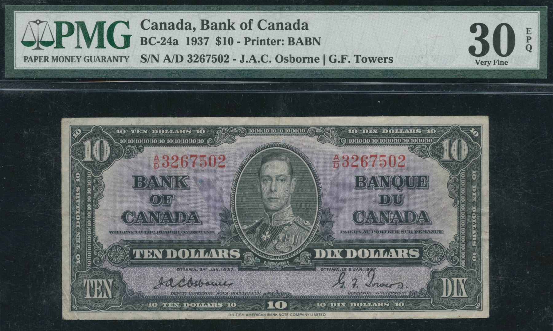 BC-24a. PMG Very Fine 30EPQ. S/N:A/D3267502.