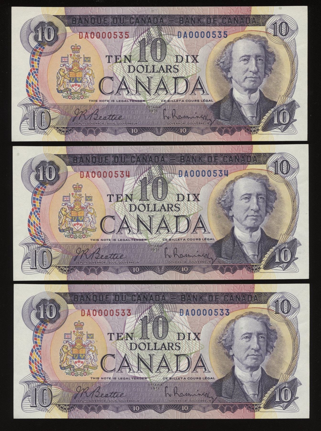 BC-49a. All Unc's. Beattie- Rasminsky, S/N: DA0000533-535. 3 Pcs.