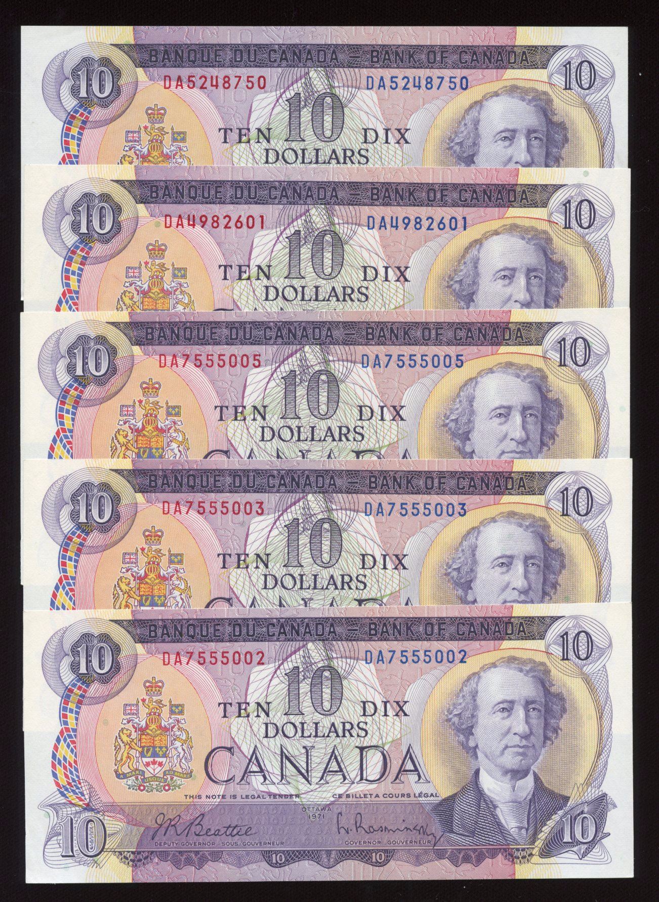 BC-49a. All Unc's. Beattie- Rasminsky with DA prefix. 5 Pcs.