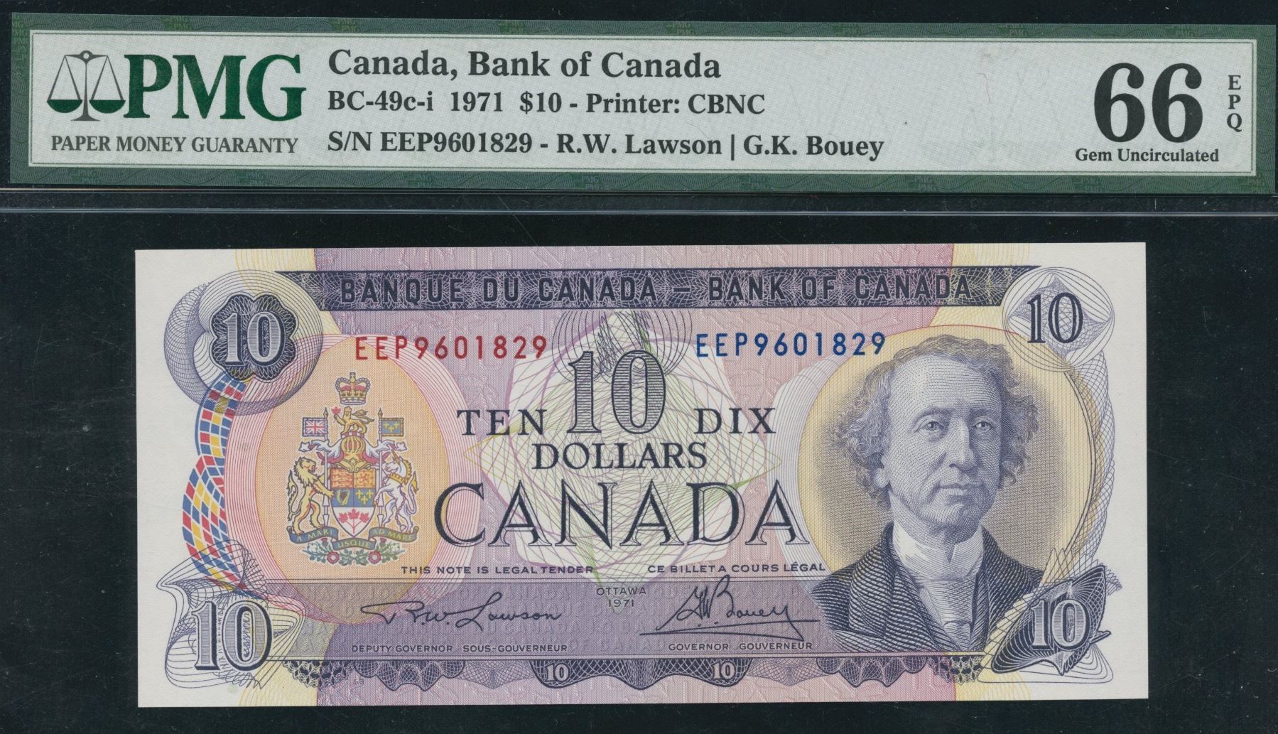 BC-49c-i. PMG Gem Unc. 66 EPQ. Only 5 notes are on the population report. S/N: EEP9601829. Part of the Botany Collection.