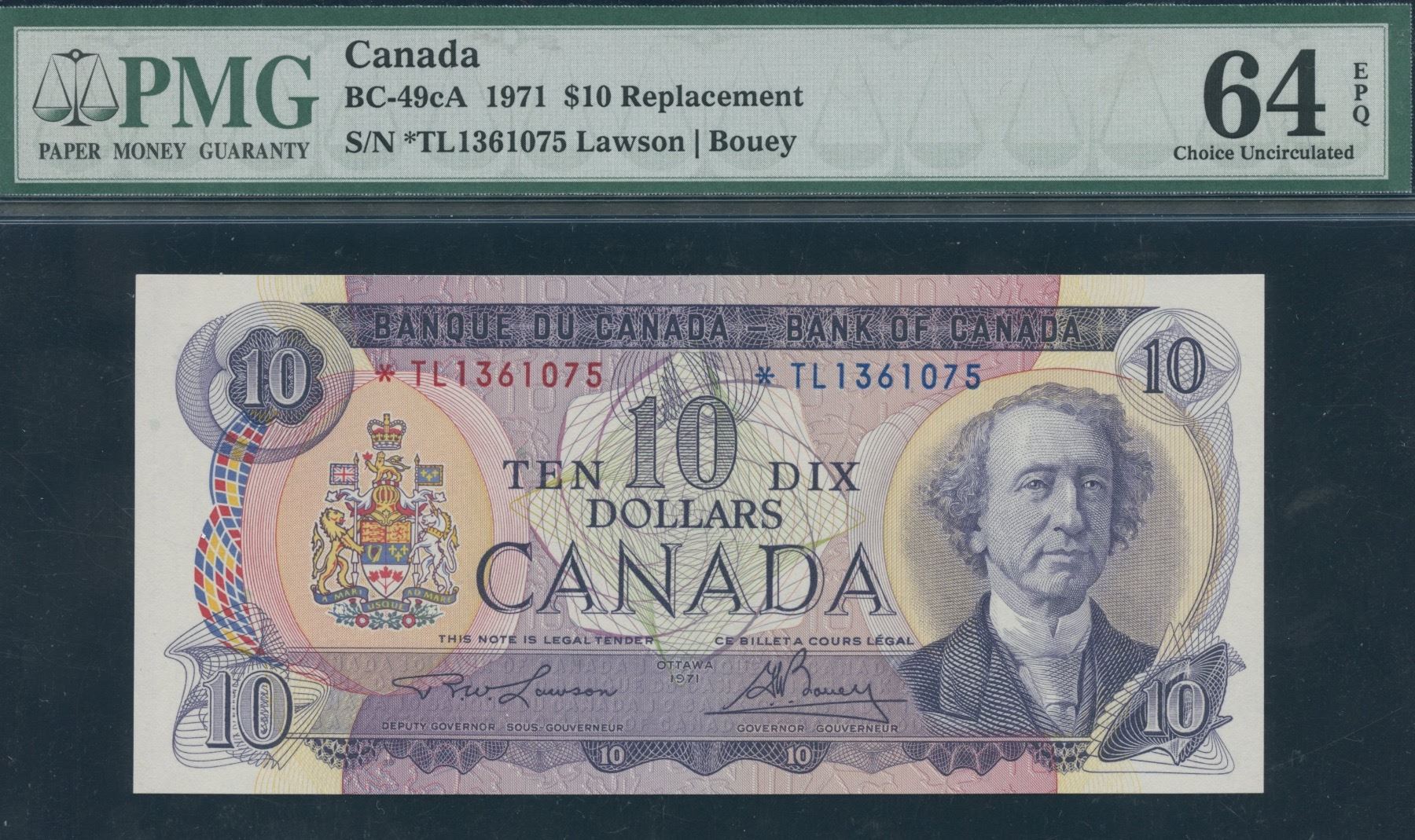BC-49cA. PMG Choice Unc. 64 EPQ. S/N: *TL1361075.