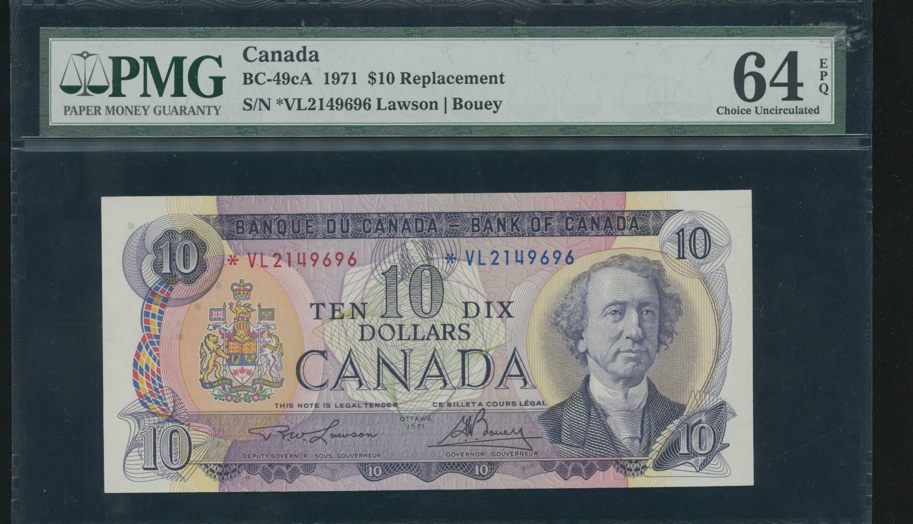 BC-49cA. PMG Choice Unc. 64 EPQ. S/N: *VL2149696.