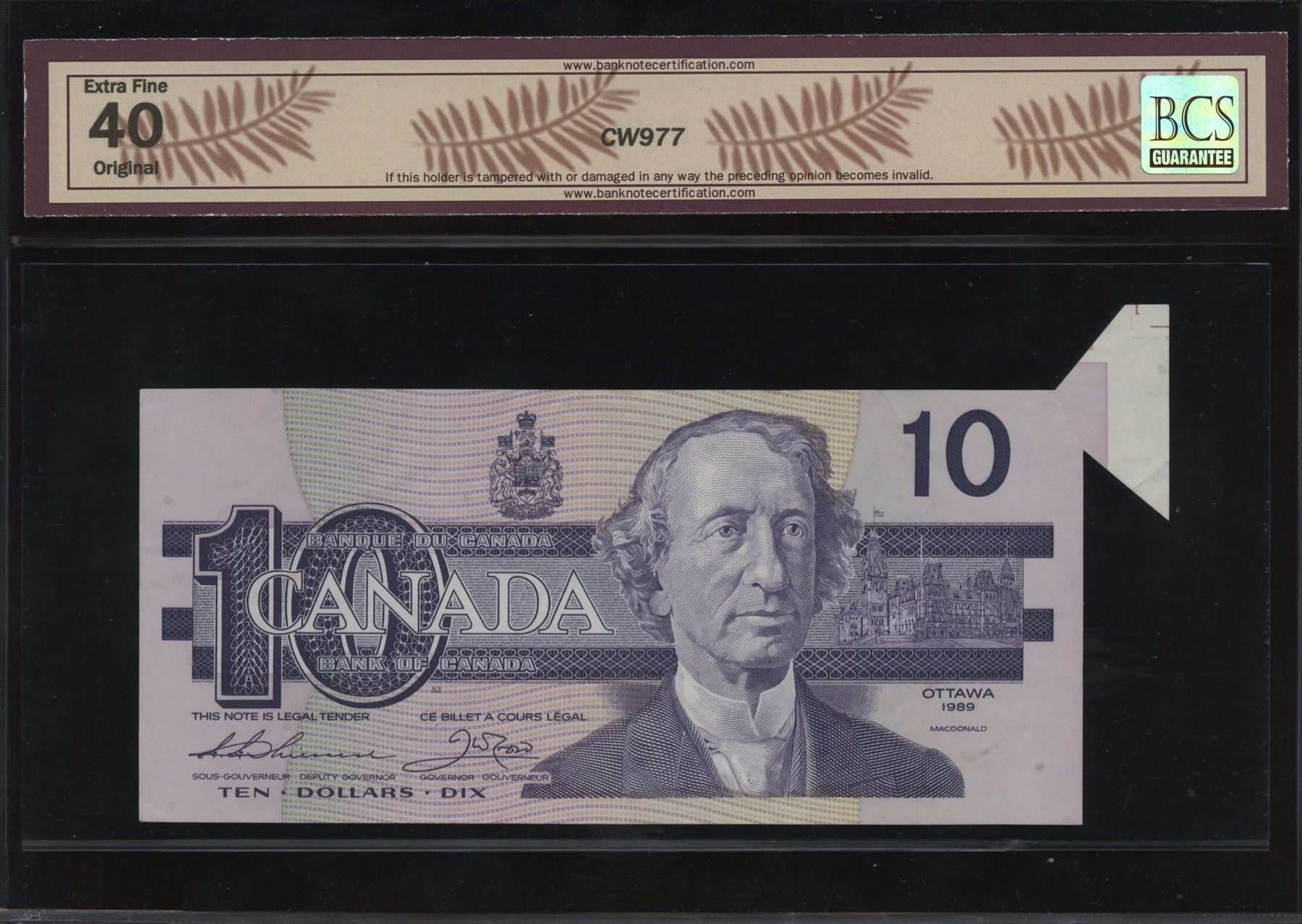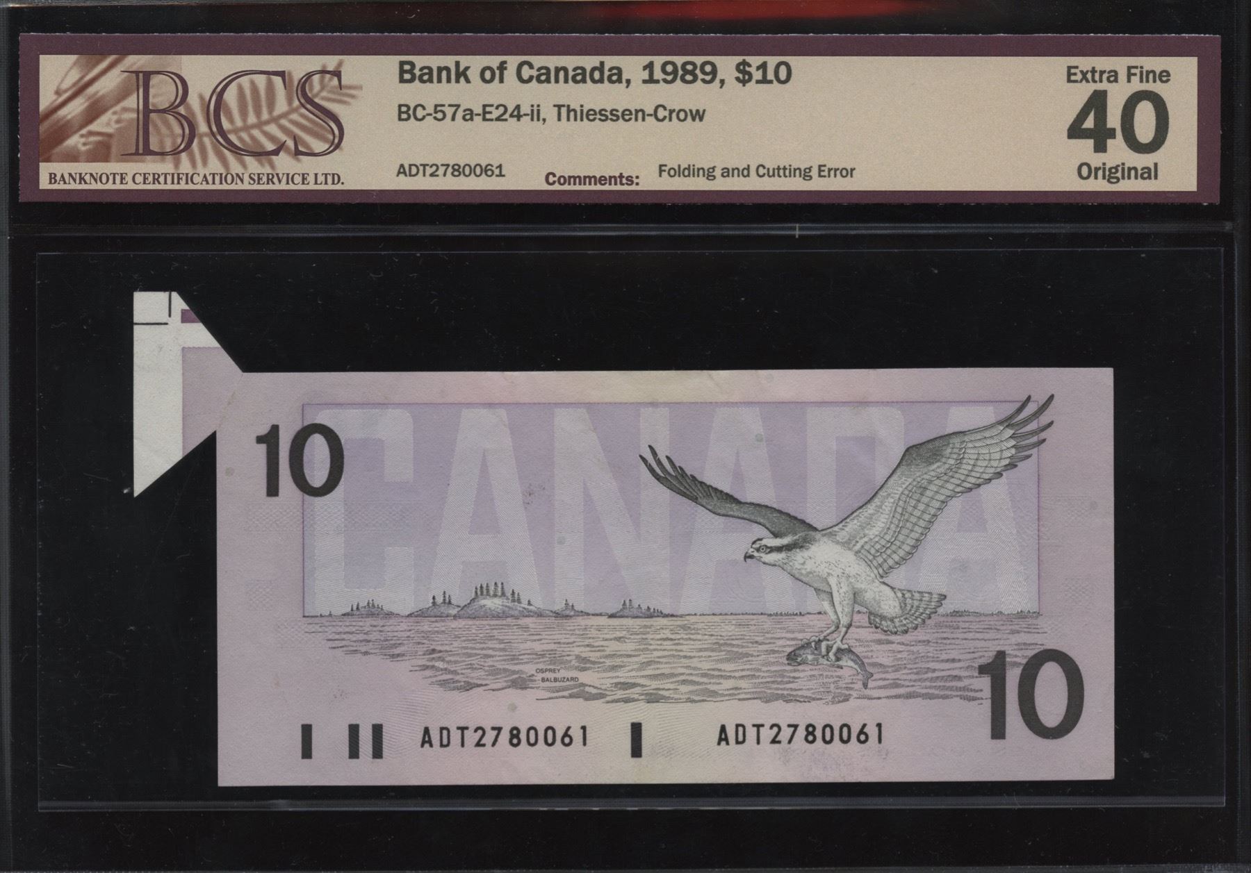 Bank of Canada $10, 1989 - Folding and Cutting Error