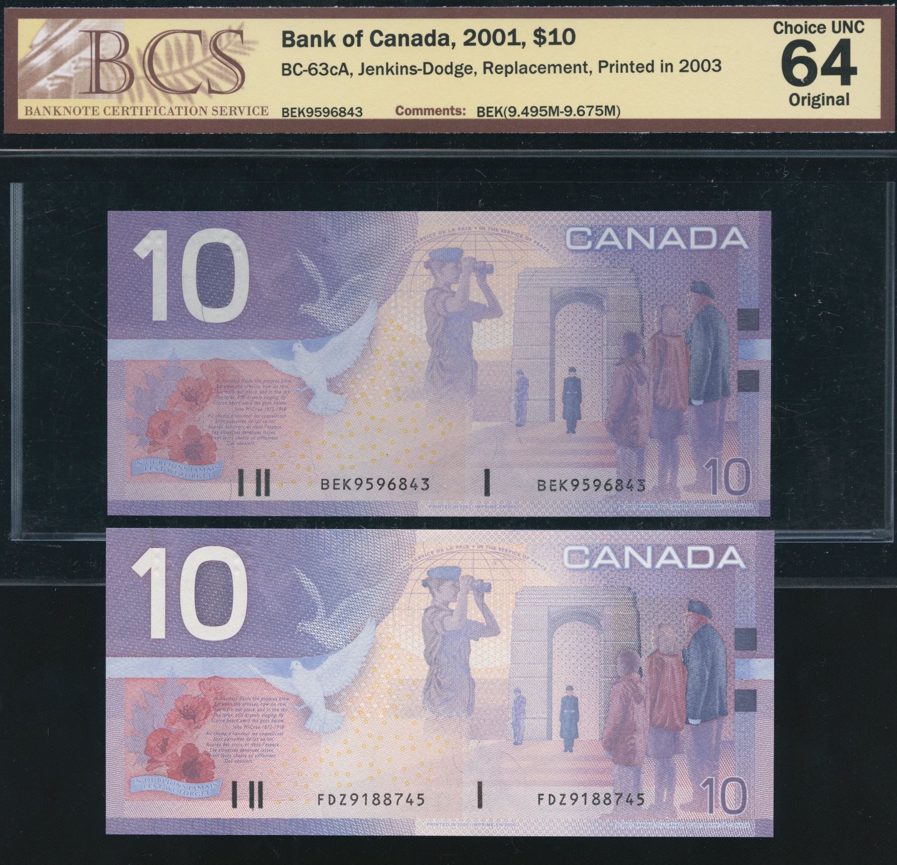 BC-63aA. Unc. S/N: FDZ9188745. BC-63cA. BCS Choice UNC 64, original. S/N: BEK9596843. 2 pcs.