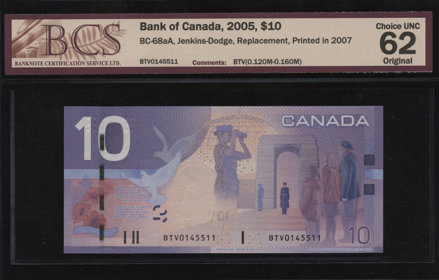 BC-68aA, Jenkins-Dodge, Replacement, Printed in 2007. BCS Choice UNC 62 Original. S/N:BTV0145511, BTV(0.120M-0.160M).
