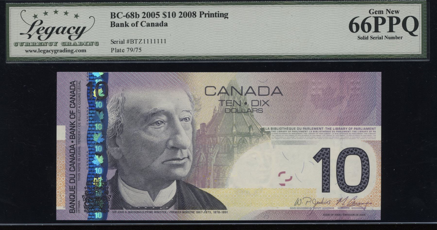 BC-68a. N1-i. Legacy Gem New 66 PPQ, Solid Serial Number. S/N: BTZ1111111.