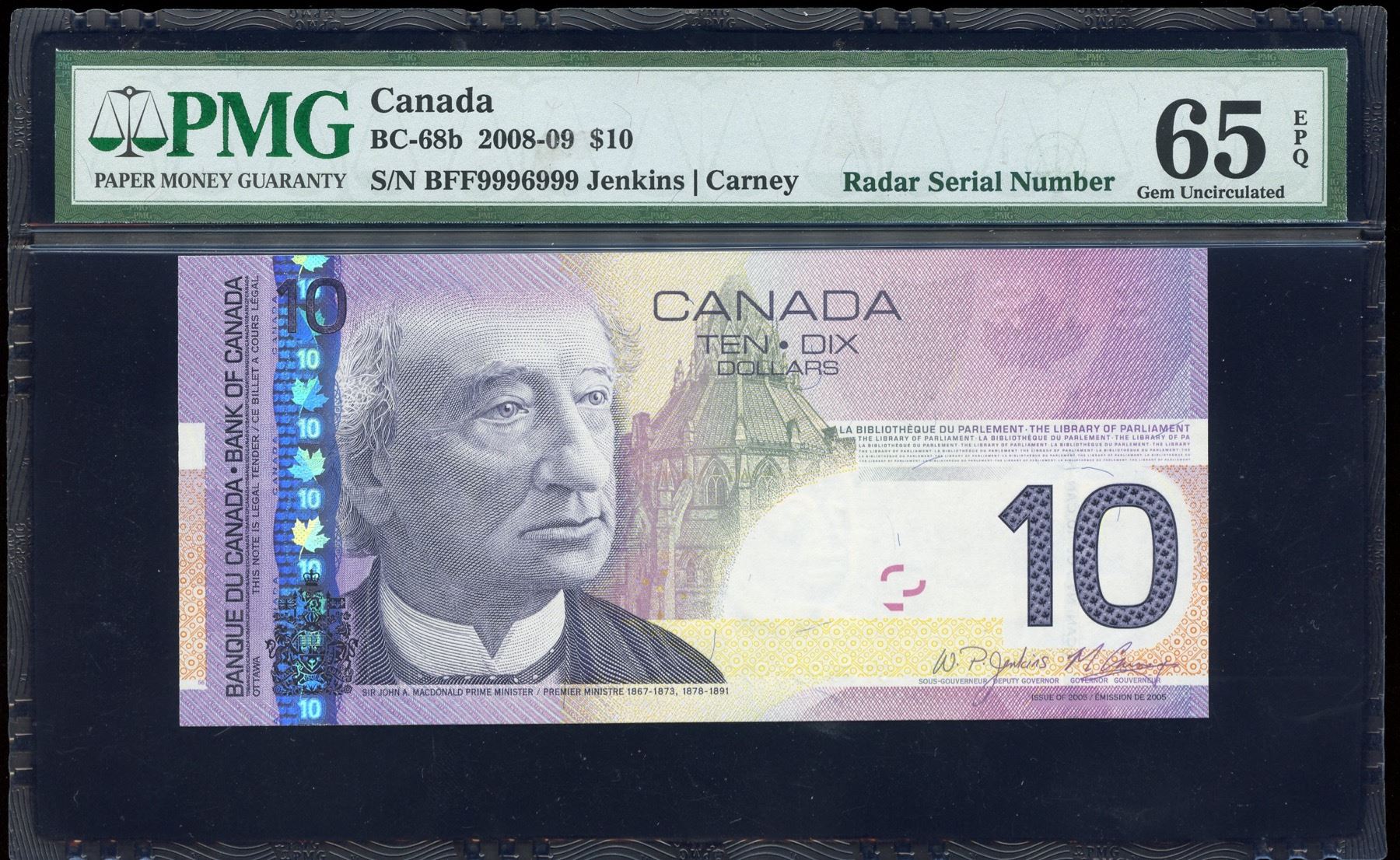 BC-68b. PMG Gem Unc. 65. S/N:BFF9996999.