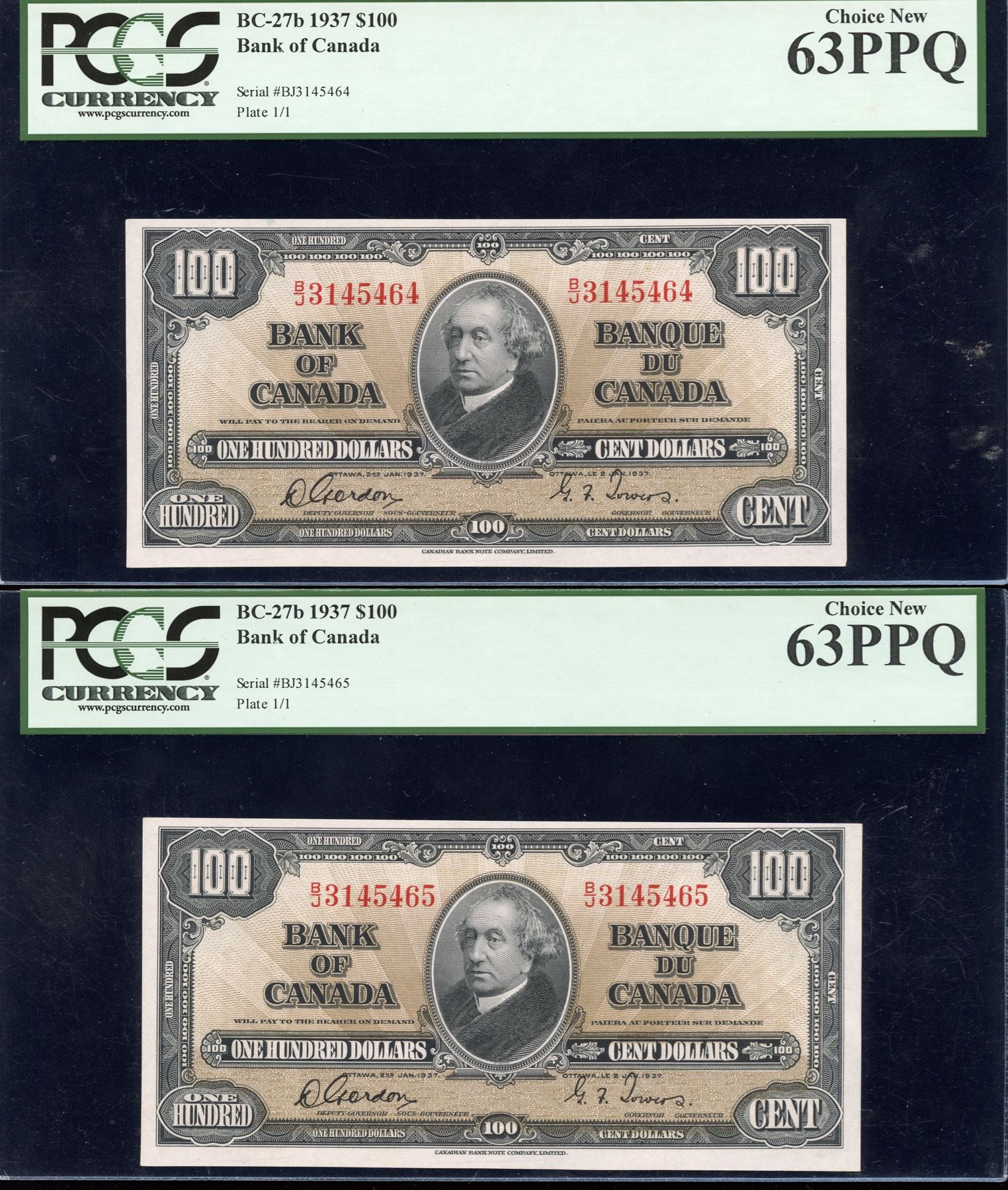 BC-27b. PCGS Choice New 63PPQ. S/N:B/J3145464-5465. 2 Pcs.