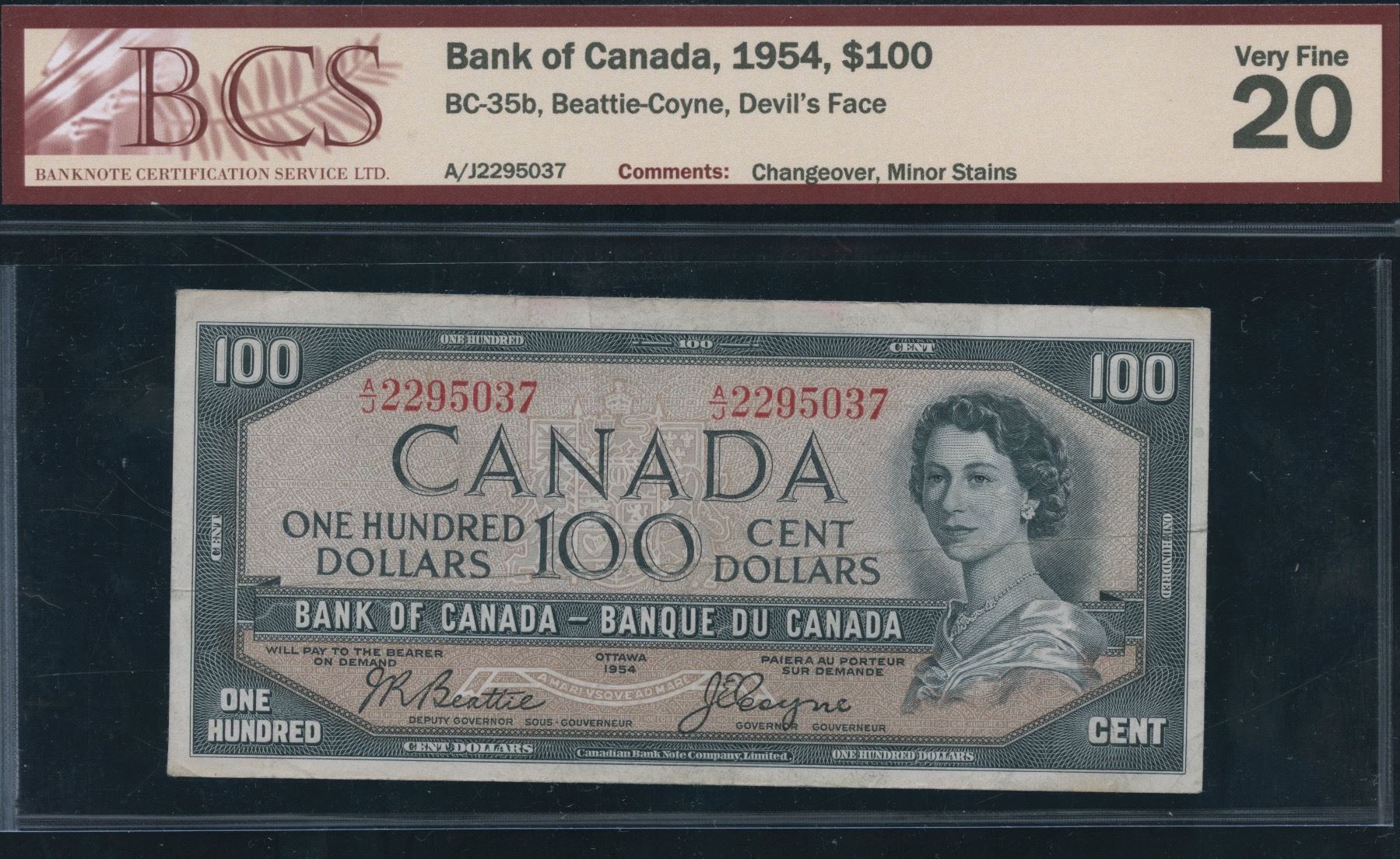 BC-35b, Beattie-Coyne, Devil's Face. BCS Very Fine 20. S/N: A/J 2295037