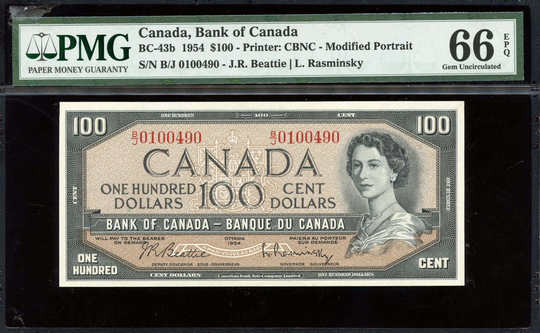 BC-43b. PMG Gem Unc. 66 EPQ. S/N: B/J0100490.