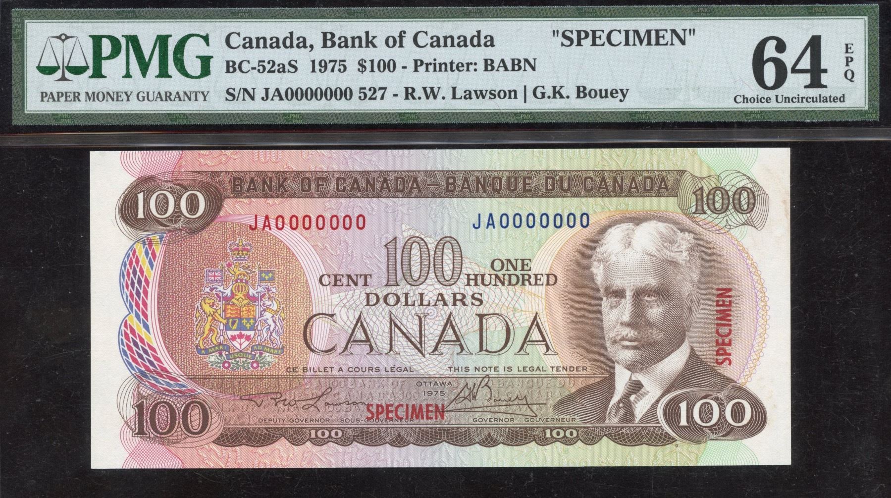 BC-52aS. PMG Choice Unc. 64, EPQ. S/N: JA0000000, numbered 527 in red.