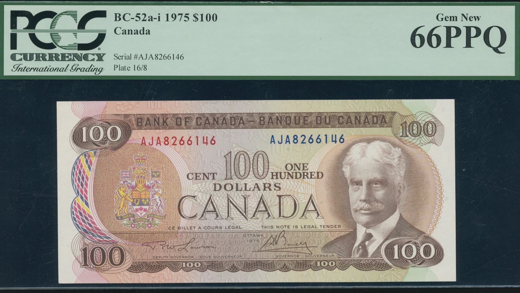 BC-52a-i. PCGS Gem New 66 PPQ. S/N: AJA8266146. Part of the Botany Collection.