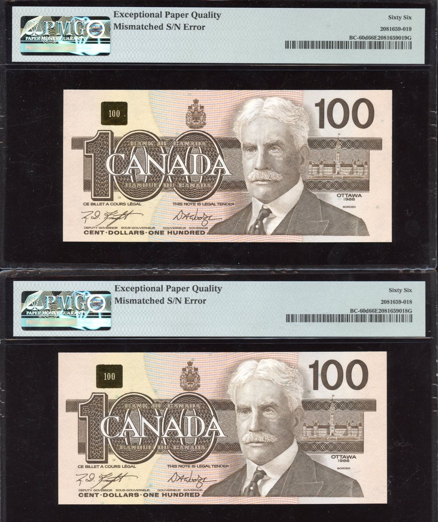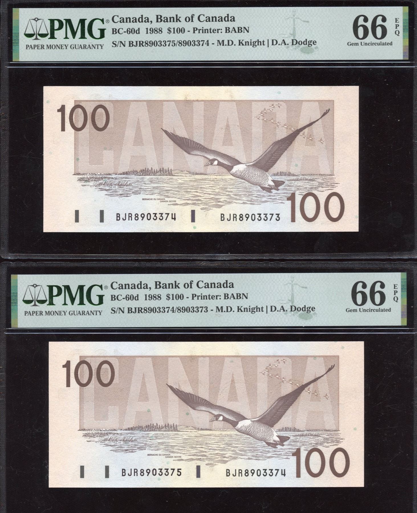 BC-60d, E15. PMG 66 EPQ, S/N:BJR8903374/BJR8903373 & S/N:BJR8903375/BJR8903374. 2 Notes.